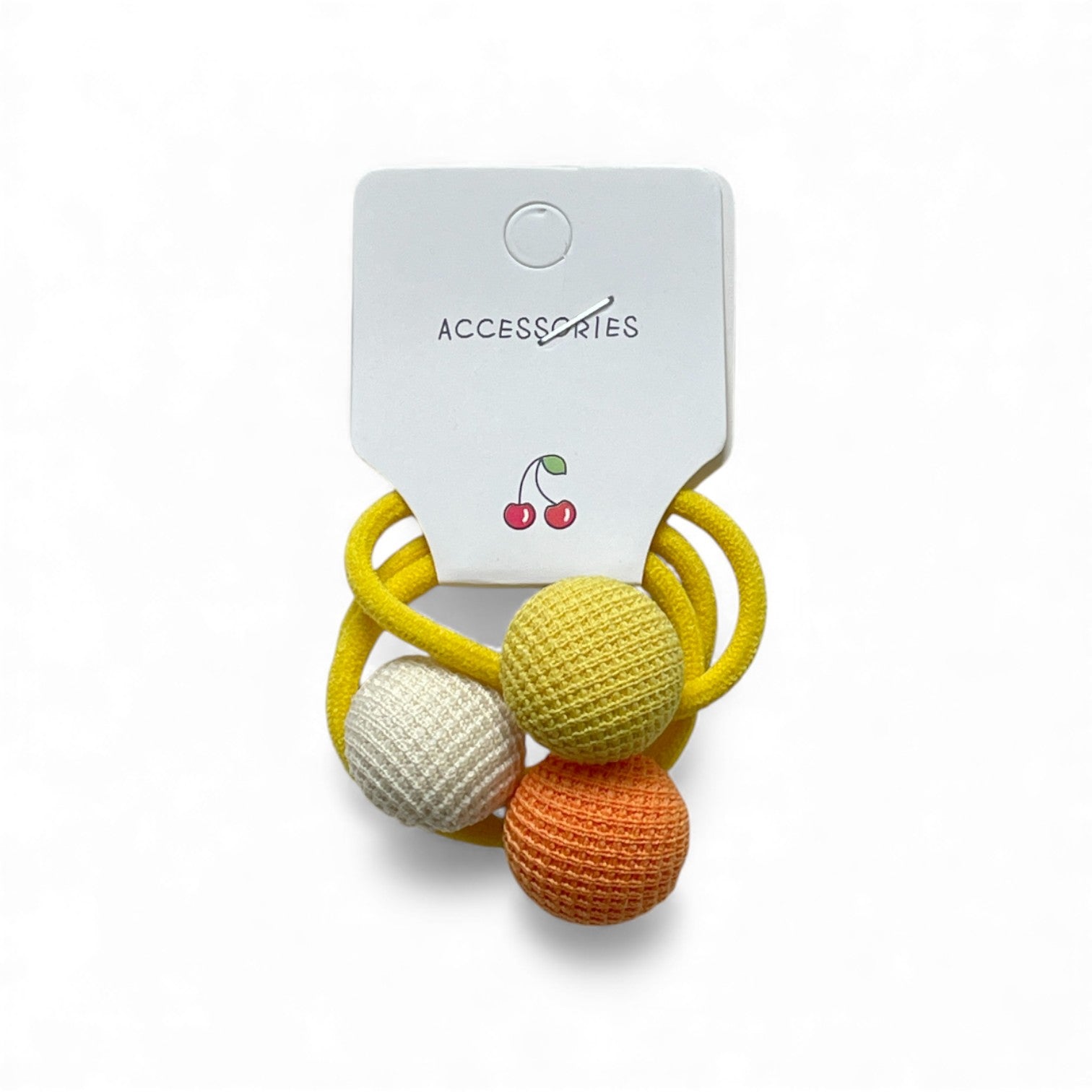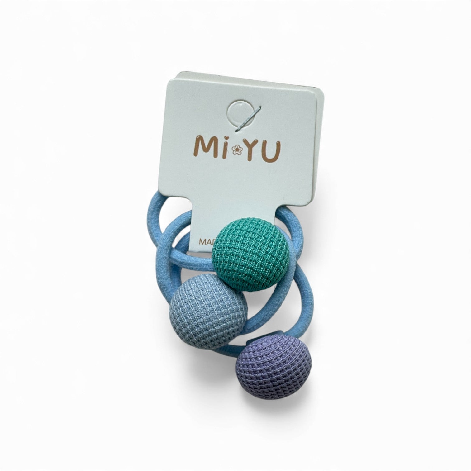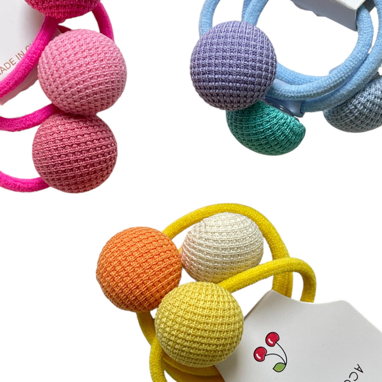Cool-toned elastics with playful purple, green, and blue spheres—fresh pops of colour for fun hair days.
